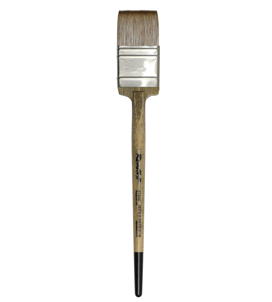 Плоская кисть-флейц из синтетики, имитирующей волос мангуста, имеет более жёсткую структуру, чем волос белки, но более мягкую, чем свиная щетина; применима для работы с такими красками, как акрил, гуашь, темпера, тушь и акварель. Такая кисть является незаменимым инструментом для увлажнения бумаги крупного формата, для заливки однородным или градиентным тоном. Ворс хорошо впитывает влагу и также хорошо отдаёт её на полотно, что позволяет наносить широкий слой краски одним мазком и добиваться интересной формы пятна лишь поворотом руки. Новая лёгкая круглая ручка удобна в работе, позволяет создавать живописные и декоративные мазки путём вращения, что расширяет возможности художника в реализации его творческих замыслов.