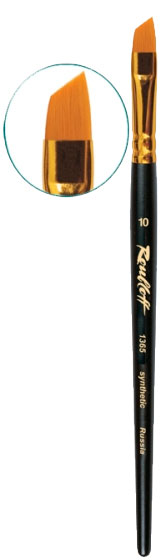О серии: кисти серии «1365» изготавливаются из жесткой синтетики рыжего цвета. Кисти выпускаются широким размерным рядом от №6 до №14. Характеристика: для изготовления кистей этой серии использована жесткая синтетика рыжего цвета. Кисти серии «1365» изготавливаются с плоским скошенным пучком с укороченной вставкой (ворс короткий). Пучок кисти проклеен химически-стойким клеем и надежно прикреплен к древку кисти алюминиевой анодированной обоймой. Кисти выполнены на длинной черной матовой ручке. Кисти этой серии будут удерживать волос при работе с ацетоном в течении двух часов. Применение: кисти этой серии в основном используются для работы с такими красками, как акрил, масло, гуашь. Такими кистями удобно прорисовывать детальные четкие мазки и прямоугольные формы. На усмотрение художника кисти можно использовать в других техниках живописи. Производство: изготавливаются под брендом Roubloff, который был основан в 1988 году в Кировской области (Россия). Кировская область – один из центров народных промыслов в России. Здесь же занимаются разведением пушных зверей, чей мех является идеальным материалом для кистей. Продукция бренда Roubloff – кисти самого разного назначения, размера и формы. Весь материл, используемый при производстве продукции, проходит отбор, чтобы каждый клиент получил лучшие кисти для своих работ. Кисти марки Roubloff являются одними из лучших в России.