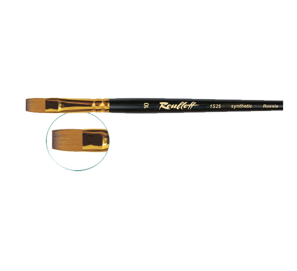 О серии: кисти серии «1S25» изготавливаются из синтетики имитации колонка. Кисти представлены широким размерным рядом от №2 до №36. Характеристика: синтетика, которая использована для кистей серии «1S25», это результат работы специалистов и попытка повторить то, что создано природой. Волос синтетики, из которой изготовлены эти кисти, по своим свойствам максимально приближена к ворсу колонка. Ворс достаточно упругий и хорошо впитывает краску. Мазок не теряет свою жесткость при намокании. Пучок кисти плоский с укороченной вставкой (ворс короткий). Крепление ворса к древку кисти выполнено алюминиевой анодированной обоймой. Кисть изготовлена на короткой черной матовой ручке. Применение: кисти этой серии применяются для работы с густыми красками (масло, акрил, гуашь). Кисти такой формы удобны для прорисовки прямых линий и прямоугольных форм. Производство: изготавливаются под брендом Roubloff, который был основан в 1988 году в Кировской области (Россия). Кировская область – один из центров народных промыслов в России. Здесь же занимаются разведением пушных зверей, чей мех является идеальным материалом для кистей. Продукция бренда Roubloff – кисти самого разного назначения, размера и формы. Весь материл, используемый при производстве продукции, проходит отбор, чтобы каждый клиент получил лучшие кисти для своих работ. Кисти марки Roubloff являются одними из лучших в России.
