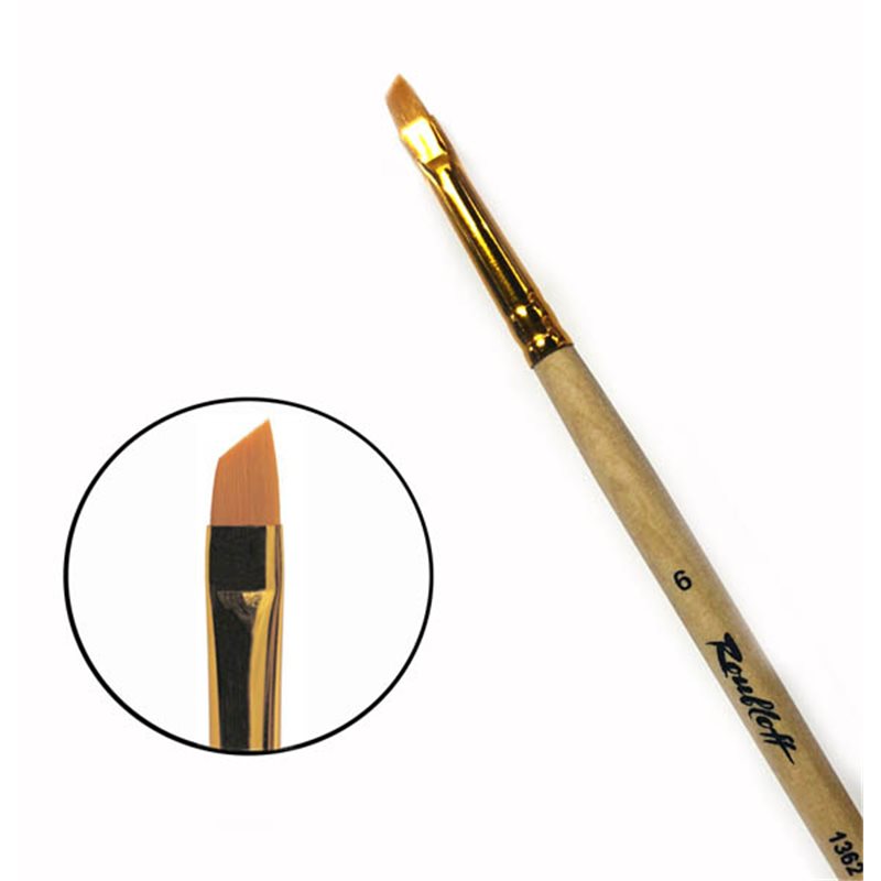 О серии: кисти серии «1365» изготавливаются из жесткой синтетики рыжего цвета. Кисти выпускаются широким размерным рядом от №6 до №14. Характеристика: для изготовления кистей этой серии использована жесткая синтетика рыжего цвета. Кисти серии «1365» изготавливаются с плоским скошенным пучком с укороченной вставкой (ворс короткий). Пучок кисти проклеен химически-стойким клеем и надежно прикреплен к древку кисти алюминиевой анодированной обоймой. Кисти выполнены на длинной ручке пропитанной лаком. Кисти этой серии будут удерживать волос при работе с ацетоном в течении двух часов. Применение: кисти этой серии в основном используются для работы с такими красками, как акрил, масло, гуашь. Такими кистями удобно прорисовывать детальные четкие мазки и прямоугольные формы. На усмотрение художника кисти можно использовать в других техниках живописи. Производство: изготавливаются под брендом Roubloff, который был основан в 1988 году в Кировской области (Россия). Кировская область – один из центров народных промыслов в России. Здесь же занимаются разведением пушных зверей, чей мех является идеальным материалом для кистей. Продукция бренда Roubloff – кисти самого разного назначения, размера и формы. Весь материл, используемый при производстве продукции, проходит отбор, чтобы каждый клиент получил лучшие кисти для своих работ. Кисти марки Roubloff являются одними из лучших в России.