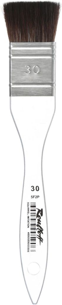 О серии: плоская кисть-флейц из синтетики, имитирующей волос белки; применима для работы с такими красками, как гуашь, темпера, тушь и акварель. Такая кисть является незаменимым инструментом для увлажнения бумаги крупного формата, для заливки однородным или градиентным тоном. Ворс хорошо впитывает влагу и также хорошо отдает ее на полотно, что позволяет наносить широкий слой краски одним мазком и добиваться интересной формы пятна лишь поворотом руки. Применение: используется для художественных работ акварельными, гуашевыми и другими водорастворимыми красками. Производство: изготавливаются под брендом Roubloff, который был основан в 1988 году в Кировской области (Россия). Кировская область – один из центров народных промыслов в России. Здесь же занимаются разведением пушных зверей, чей мех является идеальным материалом для кистей. Продукция бренда Roubloff – кисти самого разного назначения, размера и формы. Весь материл, используемый при производстве продукции, проходит отбор, чтобы каждый клиент получил лучшие кисти для своих работ. Кисти марки Roubloff являются одними из лучших в России.
