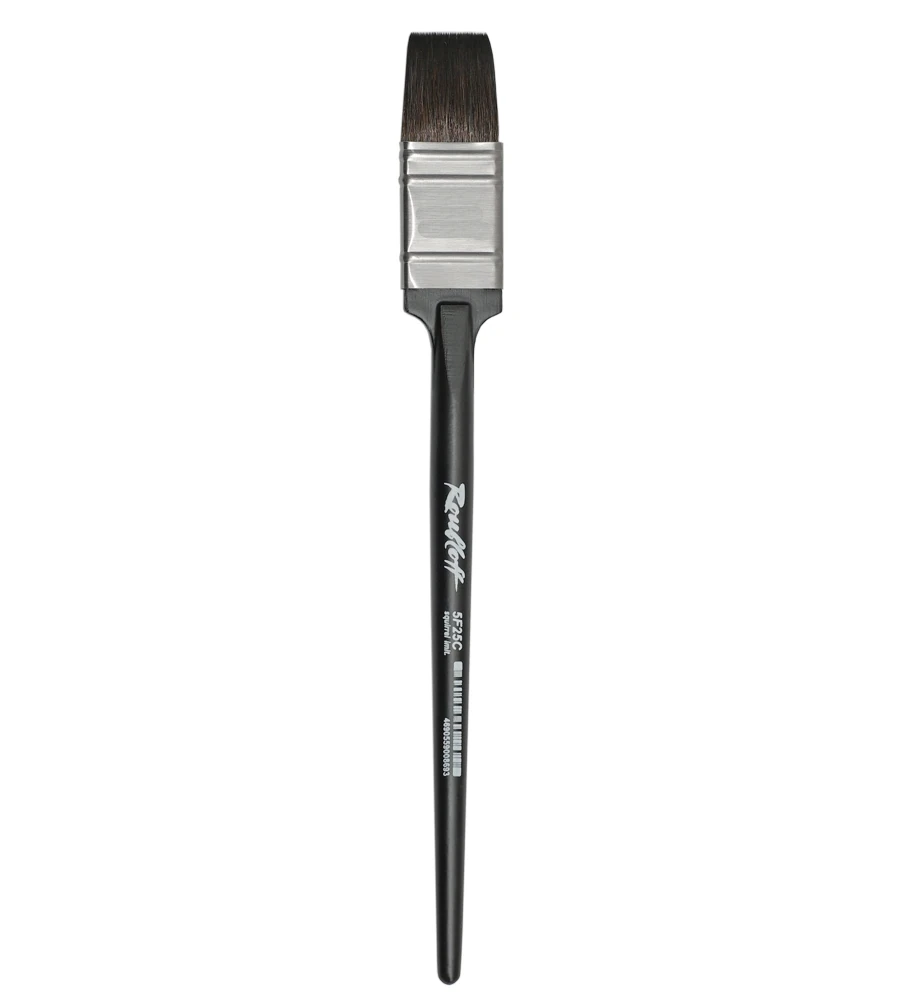 Плоская кисть-флейц из синтетики, имитирующей волос белки, является незаменимым инструментом для увлажнения бумаги крупного формата в акварельной технике, для заливки однородным или градиентным тоном, а также для нанесения полос различными жидкими красками. Ворс хорошо впитывает влагу и также хорошо отдаёт её на полотно, что позволяет наносить широкий слой краски одним мазком и добиваться интересной формы пятна лишь поворотом руки. Новая лёгкая круглая ручка удобна в работе, позволяет создавать живописные и декоративные мазки путём вращения, что расширяет возможности художника в реализации его творческих замыслов.