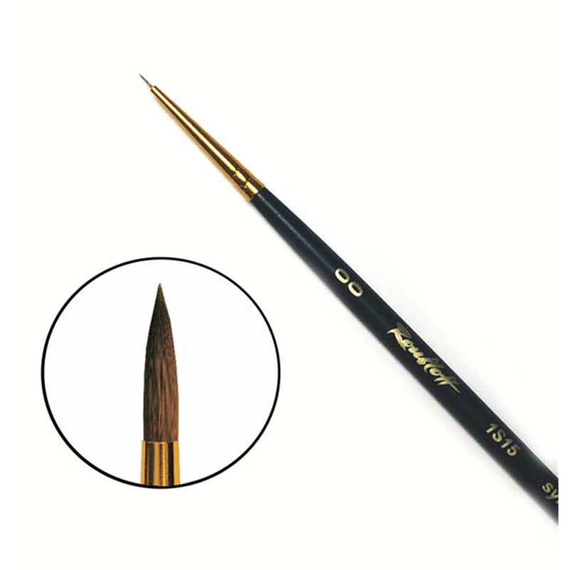 О серии: кисти серии «1S15» изготавливаются из синтетики имитации колонка. Кисти представлены размерным рядом от №00 до №10. Характеристика: синтетика, которая использована для кистей серии «1S15», это результат работы специалистов и попытка повторить то, что создано природой. Волос синтетики, из которой изготовлены эти кисти, по своим свойствам максимально приближена к ворсу колонка. Ворс достаточно упругий и хорошо впитывает краску. Мазок не теряет свою жесткость при намокании. Пучок кисти круглый с укороченной вставкой (ворс короткий), кончик кисти заострен. Крепление ворса к древку кисти выполнено алюминиевой анодированной обоймой. Кисть изготовлена на короткой черной матовой ручке. Применение: кисти этой серии применяются для работы с густыми красками (масло, акрил, гуашь). Круглые кисти удобны для прорисовки точных деталей изображения. Производство: изготавливаются под брендом Roubloff, который был основан в 1988 году в Кировской области (Россия). Кировская область – один из центров народных промыслов в России. Здесь же занимаются разведением пушных зверей, чей мех является идеальным материалом для кистей. Продукция бренда Roubloff – кисти самого разного назначения, размера и формы. Весь материл, используемый при производстве продукции, проходит отбор, чтобы каждый клиент получил лучшие кисти для своих работ. Кисти марки Roubloff являются одними из лучших в России.