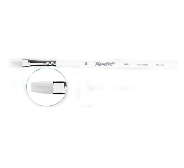 О серии: кисти серии «1B22» изготовлены из белой синтетики. Серия представлена широким размерным рядом от №4 до №36. Характеристика: кисти серии «1B22» по своим свойствам напоминают кисти, изготовленные из щетины. Кисти изготавливаются из специализированной синтетики белого цвета. Цвет волоса приближенный к цвету натуральной щетины помогает художнику видеть какой оттенок он получил при смешивании краски. Пучок кисти имеет плоскую форму. Пучок кисти проклеен химически-стойким клеем и надежно прикреплен к древку кисти медной хромированной обоймой. Кисти выполнены на длинной ручке белого цвета. Кисти этой серии будут удерживать волос при работе с ацетоном в течении двух часов. Применение: кисти этой серии в основном применяются для выполнения работ маслом или акрилом. Кисти такой формы удобны для прорисовки прямых линий и прямоугольных форм. На усмотрение художника кисти можно использовать в других техниках живописи. После работы кисти рекомендуется промывать скипидаром или теплой водой. Производство: изготавливаются под брендом Roubloff, который был основан в 1988 году в Кировской области (Россия). Кировская область – один из центров народных промыслов в России. Здесь же занимаются разведением пушных зверей, чей мех является идеальным материалом для кистей. Продукция бренда Roubloff – кисти самого разного назначения, размера и формы. Весь материл, используемый при производстве продукции, проходит отбор, чтобы каждый клиент получил лучшие кисти для своих работ. Кисти марки Roubloff являются одними из лучших в России.