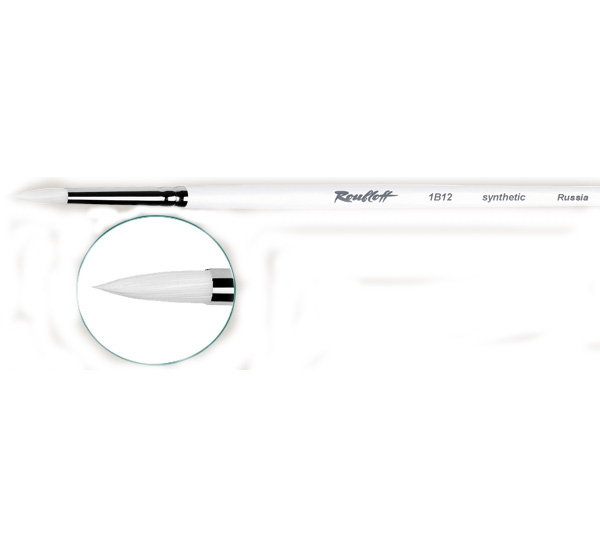 О серии: кисти серии «1B12» изготовлены из белой синтетики. Серия представлена широким размерным рядом от №0 до №14. Характеристика: кисти серии «1B12» по своим свойствам напоминают кисти, изготовленные из щетины. Кисти изготавливаются из специализированной синтетики белого цвета. Цвет волоса приближенный к цвету натуральной щетины помогает художнику видеть какой оттенок он получил при смешивании краски. Пучок кисти имеет круглую форму с заостренным кончиком. Пучок кисти проклеен химически-стойким клеем и надежно прикреплен к древку кисти медной хромированной обоймой. Кисти выполнены на длинной ручке белого цвета. Кисти этой серии будут удерживать волос при работе с ацетоном в течении двух часов. Применение: кисти этой серии в основном применяются для выполнения работ маслом или акрилом. Кисти такой формы удобны для прорисовки точных деталей изображения. На усмотрение художника кисти можно использовать в других техниках живописи. Производство: изготавливаются под брендом Roubloff, который был основан в 1988 году в Кировской области (Россия). Кировская область – один из центров народных промыслов в России. Здесь же занимаются разведением пушных зверей, чей мех является идеальным материалом для кистей. Продукция бренда Roubloff – кисти самого разного назначения, размера и формы. Весь материл, используемый при производстве продукции, проходит отбор, чтобы каждый клиент получил лучшие кисти для своих работ. Кисти марки Roubloff являются одними из лучших в России.