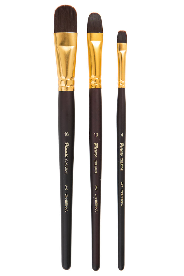 О серии: скошенные синтетические кисти «Pinax Creative» 698 изготовленные из жесткой синтетики. В серии представлены кисти с плоским овальным пучком. Характеристика: для производства кистей этой серии использована жесткая упругая синтетика. Пучок кисти имеет плоскую форму со скошенным срезом. Кисти выполнены на короткой ручке из березовой древесины, которая покрыта глянцевой эмалью глубокого гранатового цвета. Крепление ворса к черенку кисти осуществляется алюминиевой обоймой полированной «под золото». Применение: кисти данной серии разработаны специально для выполнения работ масляными и акриловыми красками. При работе кисти данной серии позволяют подчеркнуть структуру мазка. Производство: данный товар представлен брендом Pinax. Pinax — бренд товаров, который представлен на российском рынке с начала XXI века. Изначально компания производила только кисти для художественных работ, но затем расширила свое производство и не потеряв качество своей продукции начала производить холсты, мольберты и аксессуары для художников. Сейчас ассортимент включает в себя большое количество наименований.