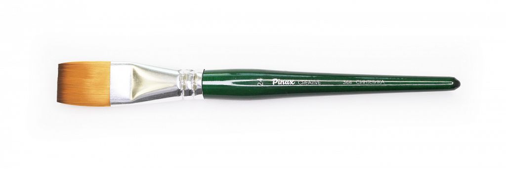 О серии: кисти серии «Pinax Creative 344» изготавливаются из синтетического волокна. В данной серии представлен широкий размерный ряд кистей. Характеристика: кисти этой серии изготавливаются из высококачественной синтетики золотисто-оранжевого цвета (Golden Taklon). Волос таких кистей имеет среднюю жесткость и хорошо держит свою форму. Дополнительным преимуществом кистей из синтетического волоса считается то что он гипераллергенный. Кисти серии «Pinax Creative 344» имеют пучок плоской формы. Кисти изготовлены на короткой деревянной ручке, покрытой полупрозрачным лаком зеленого цвета. Крепление ворса к черенку кисти выполнено за счет алюминиевой втулки. Применение: кисти этой серии универсальны в своем применении. Они подходят для художников всех уровней и могут использоваться для работы разными художественными красками и лаками. Производство: данный товар представлен брендом Pinax. Pinax — мировой бренд товаров, который представлен на российском рынке с начала XXI века. Изначально компания производила только кисти для художественных работ, но затем расширила свое производство и не потеряв качество своей продукции начала производить холсты, мольберты и аксессуары для художников. Сейчас ассортимент включает в себя большое количество наименований.