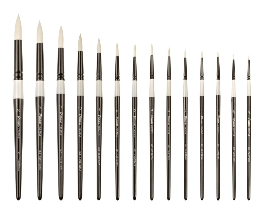 Характеристика: кисти из белой акварельной синтетики в оптимальном сочетании цена/качество. Эластичный и управляемый синтетический ворс отлично набирает краску и равномерно отдает на поверхность, а тонкий кончик у круглых кистей позволяет работать с мельчайшими деталями. Кисти представлены на короткой лакированной деревянной ручке, изготовленной из березы, алюминиевая бесшовная втулка окрашена в черный цвет. Применение: кисти этой серии обладают мягким синтетическим ворсом, благодаря чему идеально подходят для работ красками на водной основе и мягким акрилом. Производство: данный товар представлен брендом Pinax. Pinax — мировой бренд товаров, который представлен на российском рынке с начала XXI века. Изначально компания производила только кисти для художественных работ, но затем расширила свое производство и не потеряв качество своей продукции начала производить холсты, мольберты и аксессуары для художников. Сейчас ассортимент включает в себя большое количество наименований.