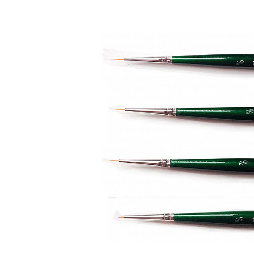 Тонкая круглая кисть из синтетики предназначена для детальных прорисовок и тонких работ художественными красками. Кисть представлена в 4 размерах от №5/0 до №8/0.