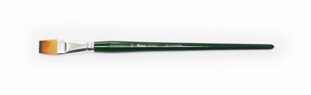 О серии: плоские кисти серии «Pinax Creative 345» изготавливаются из синтетического волокна. В данной серии представлен широкий размерный ряд кистей. Характеристика: кисти этой серии изготавливаются из высококачественной синтетики золотисто-оранжевого цвета (Golden Taklon). Волос таких кистей имеет среднюю жесткость и хорошо держит свою форму. Дополнительным преимуществом кистей из синтетического волоса считается то что он гипераллергенный. Кисти серии «Pinax Creative 345» имеют пучок плоской формы. Кисти изготовлены на длинной деревянной ручке, покрытой полупрозрачным лаком зеленого цвета. Крепление ворса к черенку кисти выполнено за счет алюминиевой втулки. Применение: кисти этой серии универсальны в своем применении. Они подходят для художников всех уровней и могут использоваться для работы разными художественными красками и лаками. Производство: данный товар представлен брендом Pinax. Pinax — мировой бренд товаров, который представлен на российском рынке с начала XXI века. Изначально компания производила только кисти для художественных работ, но затем расширила свое производство и не потеряв качество своей продукции начала производить холсты, мольберты и аксессуары для художников. Сейчас ассортимент включает в себя большое количество наименований.