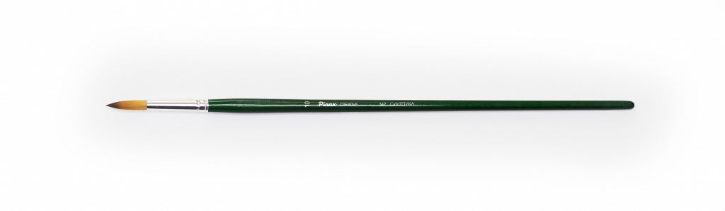 О серии: веерные кисти серии «Pinax Creative 342» изготавливаются из синтетического волокна. В данной серии представлен широкий размерный ряд кистей. Характеристика: кисти этой серии изготавливаются из высококачественной синтетики золотисто-оранжевого цвета (Golden Taklon). Волос таких кистей имеет среднюю жесткость и хорошо держит свою форму. Дополнительным преимуществом кистей из синтетического волоса считается то что он гипераллергенный. Кисти серии «Pinax Creative 342» имеют круглый пучок с заостренным кончиком. Кисти изготовлены на длинной деревянной ручке, покрытой полупрозрачным лаком зеленого цвета. Крепление ворса к черенку кисти выполнено за счет алюминиевой втулки. Применение: кисти этой серии универсальны в своем применении. Они подходят для художников всех уровней и могут использоваться для работы разными художественными красками и лаками. Производство: данный товар представлен брендом Pinax. Pinax — мировой бренд товаров, который представлен на российском рынке с начала XXI века. Изначально компания производила только кисти для художественных работ, но затем расширила свое производство и не потеряв качество своей продукции начала производить холсты, мольберты и аксессуары для художников. Сейчас ассортимент включает в себя большое количество наименований.