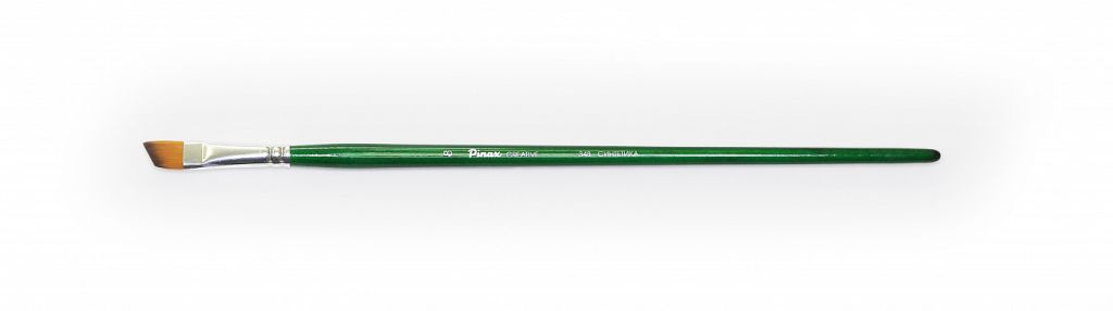О серии: кисти серии «Pinax Creative 348» изготавливаются из синтетического волокна. В данной серии представлены кисти следующих размеров: №4, 6, 8, 10, 12. Характеристика: кисти этой серии изготавливаются из высококачественной синтетики золотисто-оранжевого цвета (Golden Taklon). Волос таких кистей имеет среднюю жесткость и хорошо держит свою форму. Дополнительным преимуществом кистей из синтетического волоса считается то что он гипераллергенный. Кисти «Pinax Creative 348» изготавливаются с плоским пучком со скошенным срезом. Кисти изготовлены на длинной деревянной ручке, покрытой полупрозрачным лаком зеленого цвета. Крепление ворса к черенку кисти выполнено за счет алюминиевой втулки. Применение: кисти этой серии универсальны в своем применении. Они подходят для художников всех уровней и могут использоваться для работы разными художественными красками и лаками. Производство: данный товар представлен брендом Pinax. Pinax — мировой бренд товаров, который представлен на российском рынке с начала XXI века. Изначально компания производила только кисти для художественных работ, но затем расширила свое производство и не потеряв качество своей продукции начала производить холсты, мольберты и аксессуары для художников. Сейчас ассортимент включает в себя большое количество наименований.