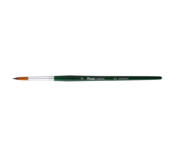 О серии: веерные кисти серии «Pinax Creative 341» изготавливаются из синтетического волокна. В данной серии представлен широкий размерный ряд кистей. Характеристика: кисти этой серии изготавливаются из высококачественной синтетики золотисто-оранжевого цвета (Golden Taklon). Волос таких кистей имеет среднюю жесткость и хорошо держит свою форму. Дополнительным преимуществом кистей из синтетического волоса считается то что он гипераллергенный. Кисти серии «Pinax Creative 341» имеют круглый пучок с заостренным кончиком. Кисти изготовлены на короткой деревянной ручке, покрытой полупрозрачным лаком зеленого цвета. Крепление ворса к черенку кисти выполнено за счет алюминиевой втулки. Применение: кисти этой серии универсальны в своем применении. Они подходят для художников всех уровней и могут использоваться для работы разными художественными красками и лаками. Производство: данный товар представлен брендом Pinax. Pinax — мировой бренд товаров, который представлен на российском рынке с начала XXI века. Изначально компания производила только кисти для художественных работ, но затем расширила свое производство и не потеряв качество своей продукции начала производить холсты, мольберты и аксессуары для художников. Сейчас ассортимент включает в себя большое количество наименований.