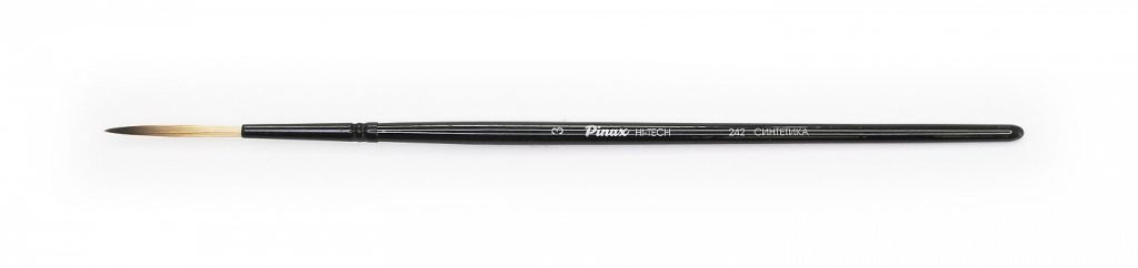 О серии: кисти серии «Pinax Artists HI-TECH» изготавливаются из специальной синтетики высокого качества. Кисти данной серии выпускаются поштучно следующих размеров: №1, 3, 5. Характеристика: для изготовления кистей серии «Pinax Artists HI-TECH» используется южнокорейская синтетика. Волос изготовленный из такой синтетики по своим характеристикам имитирует колонковый ворс. Кисти износостойки и устойчивы к воздействию химических растворителей. Пучок кисти обладает очень длинным ворсом. Длина ворса, в зависимости от размера кисти, варьируется от 28 до 36 миллиметров. Кисти выполнены на короткой глянцевой деревянной ручке. На ручку нанесен орнамент, который визуально напоминает карбон покрытый лаком. Втулка хромированная медная. Применение: кисти такой формы изольются для работы с любыми жидкими красками. Кисти подходят для использования любителями и профессионалами во всех техниках живописи. Кисти удобны для выполнения надписей и орнаментов. Производство: данный товар представлен брендом Pinax. Pinax — мировой бренд товаров, который представлен на российском рынке с начала XXI века. Изначально компания производила только кисти для художественных работ, но затем расширила свое производство и не потеряв качество своей продукции начала производить холсты, мольберты и аксессуары для художников. Сейчас ассортимент включает в себя большое количество наименований.