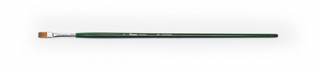 О серии: плоские кисти серии «Pinax Creative 345» изготавливаются из синтетического волокна. В данной серии представлен широкий размерный ряд кистей. Характеристика: кисти этой серии изготавливаются из высококачественной синтетики золотисто-оранжевого цвета (Golden Taklon). Волос таких кистей имеет среднюю жесткость и хорошо держит свою форму. Дополнительным преимуществом кистей из синтетического волоса считается то что он гипераллергенный. Кисти серии «Pinax Creative 345» имеют пучок плоской формы. Кисти изготовлены на длинной деревянной ручке, покрытой полупрозрачным лаком зеленого цвета. Крепление ворса к черенку кисти выполнено за счет алюминиевой втулки. Применение: кисти этой серии универсальны в своем применении. Они подходят для художников всех уровней и могут использоваться для работы разными художественными красками и лаками. Производство: данный товар представлен брендом Pinax. Pinax — мировой бренд товаров, который представлен на российском рынке с начала XXI века. Изначально компания производила только кисти для художественных работ, но затем расширила свое производство и не потеряв качество своей продукции начала производить холсты, мольберты и аксессуары для художников. Сейчас ассортимент включает в себя большое количество наименований.