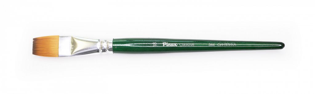 О серии: кисти серии «Pinax Creative 344» изготавливаются из синтетического волокна. В данной серии представлен широкий размерный ряд кистей. Характеристика: кисти этой серии изготавливаются из высококачественной синтетики золотисто-оранжевого цвета (Golden Taklon). Волос таких кистей имеет среднюю жесткость и хорошо держит свою форму. Дополнительным преимуществом кистей из синтетического волоса считается то что он гипераллергенный. Кисти серии «Pinax Creative 344» имеют пучок плоской формы. Кисти изготовлены на короткой деревянной ручке, покрытой полупрозрачным лаком зеленого цвета. Крепление ворса к черенку кисти выполнено за счет алюминиевой втулки. Применение: кисти этой серии универсальны в своем применении. Они подходят для художников всех уровней и могут использоваться для работы разными художественными красками и лаками. Производство: данный товар представлен брендом Pinax. Pinax — мировой бренд товаров, который представлен на российском рынке с начала XXI века. Изначально компания производила только кисти для художественных работ, но затем расширила свое производство и не потеряв качество своей продукции начала производить холсты, мольберты и аксессуары для художников. Сейчас ассортимент включает в себя большое количество наименований.
