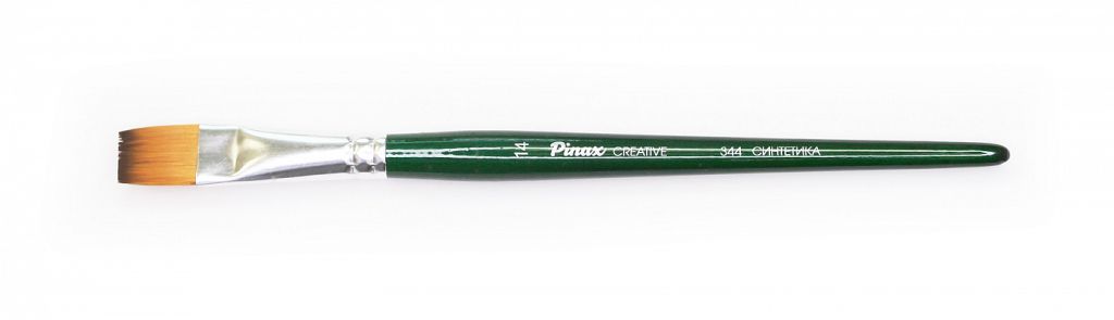 О серии: кисти серии «Pinax Creative 344» изготавливаются из синтетического волокна. В данной серии представлен широкий размерный ряд кистей. Характеристика: кисти этой серии изготавливаются из высококачественной синтетики золотисто-оранжевого цвета (Golden Taklon). Волос таких кистей имеет среднюю жесткость и хорошо держит свою форму. Дополнительным преимуществом кистей из синтетического волоса считается то что он гипераллергенный. Кисти серии «Pinax Creative 344» имеют пучок плоской формы. Кисти изготовлены на короткой деревянной ручке, покрытой полупрозрачным лаком зеленого цвета. Крепление ворса к черенку кисти выполнено за счет алюминиевой втулки. Применение: кисти этой серии универсальны в своем применении. Они подходят для художников всех уровней и могут использоваться для работы разными художественными красками и лаками. Производство: данный товар представлен брендом Pinax. Pinax — мировой бренд товаров, который представлен на российском рынке с начала XXI века. Изначально компания производила только кисти для художественных работ, но затем расширила свое производство и не потеряв качество своей продукции начала производить холсты, мольберты и аксессуары для художников. Сейчас ассортимент включает в себя большое количество наименований.