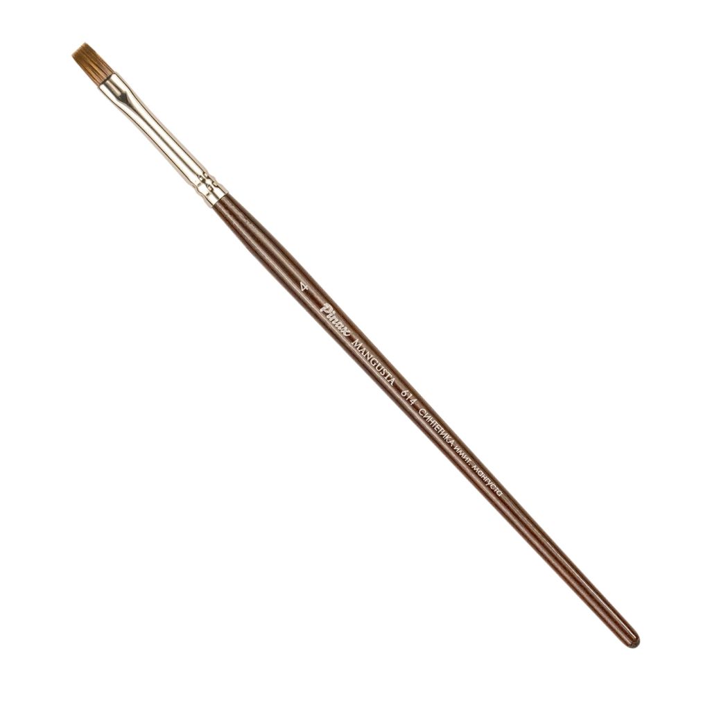 Характеристика: каждая кисть в линейке Pinax Mangusta состоит из высококачественных 100% синтетических волокон средней жесткости. Уникальное синтетическое волокно кистей Pinax Mangusta повторяет структуру натурального волоса мангуста — каждая ворсинка имеет заостренный кончик и текстуру поверхности натурального волоса мангуста — жестче колонка, но мягче свиной щетины, идеальна для масляной живописи. Мягкие и эластичные, но невероятно прочные, эти кисти на длинной ручке идеально подходят для работы в технике лессировки, обеспечивают надежный контроль мазка и равномерно отдают краску на живописную основу. Пестрый рисунок синтетических волокон перекликается с натуральным волосом мангуста – от смеси темно-коричневого и бежевого до золотистого на кончике кисти. Применение: кисти Pinax Mangusta предназначены для работ масляными и акриловыми красками. Производство: данный товар представлен брендом Pinax. Pinax — мировой бренд товаров, который представлен на российском рынке с начала XXI века. Изначально компания производила только кисти для художественных работ, но затем расширила свое производство и не потеряв качество своей продукции начала производить холсты, мольберты и аксессуары для художников. Сейчас ассортимент включает в себя большое количество наименований.