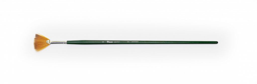 О серии: веерные кисти серии «Pinax Creative» изготавливаются из синтетического волокна. В данной серии представлены кисти следующих размеров: №2, 4, 6, 8, 10, 12. Характеристика: кисти этой серии изготавливаются из высококачественной синтетики золотисто-оранжевого цвета (Golden Taklon). Волос таких кистей имеет среднюю жесткость и хорошо держит свою форму. Дополнительным преимуществом кистей из синтетического волоса считается то что он гипераллергенный. Кисти этой серии отличаются своей формой – они производятся с негустым пучком в форме веера. Кисти изготовлены на длинной деревянной ручке, покрытой полупрозрачным лаком зеленого цвета. Крепление ворса к черенку кисти выполнено за счет алюминиевой втулки. Применение: кисти этой серии универсальны в своем применении. Они подходят для художников всех уровней и могут использоваться для работы разными художественными красками и лаками. Кисти такой формы удобны для создания специальных эффектов в живописи. Производство: данный товар представлен брендом Pinax. Pinax — мировой бренд товаров, который представлен на российском рынке с начала XXI века. Изначально компания производила только кисти для художественных работ, но затем расширила свое производство и не потеряв качество своей продукции начала производить холсты, мольберты и аксессуары для художников. Сейчас ассортимент включает в себя большое количество наименований.