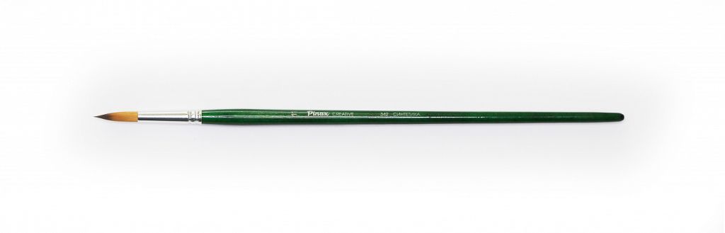 О серии: веерные кисти серии «Pinax Creative 342» изготавливаются из синтетического волокна. В данной серии представлен широкий размерный ряд кистей. Характеристика: кисти этой серии изготавливаются из высококачественной синтетики золотисто-оранжевого цвета (Golden Taklon). Волос таких кистей имеет среднюю жесткость и хорошо держит свою форму. Дополнительным преимуществом кистей из синтетического волоса считается то что он гипераллергенный. Кисти серии «Pinax Creative 342» имеют круглый пучок с заостренным кончиком. Кисти изготовлены на длинной деревянной ручке, покрытой полупрозрачным лаком зеленого цвета. Крепление ворса к черенку кисти выполнено за счет алюминиевой втулки. Применение: кисти этой серии универсальны в своем применении. Они подходят для художников всех уровней и могут использоваться для работы разными художественными красками и лаками. Производство: данный товар представлен брендом Pinax. Pinax — мировой бренд товаров, который представлен на российском рынке с начала XXI века. Изначально компания производила только кисти для художественных работ, но затем расширила свое производство и не потеряв качество своей продукции начала производить холсты, мольберты и аксессуары для художников. Сейчас ассортимент включает в себя большое количество наименований.