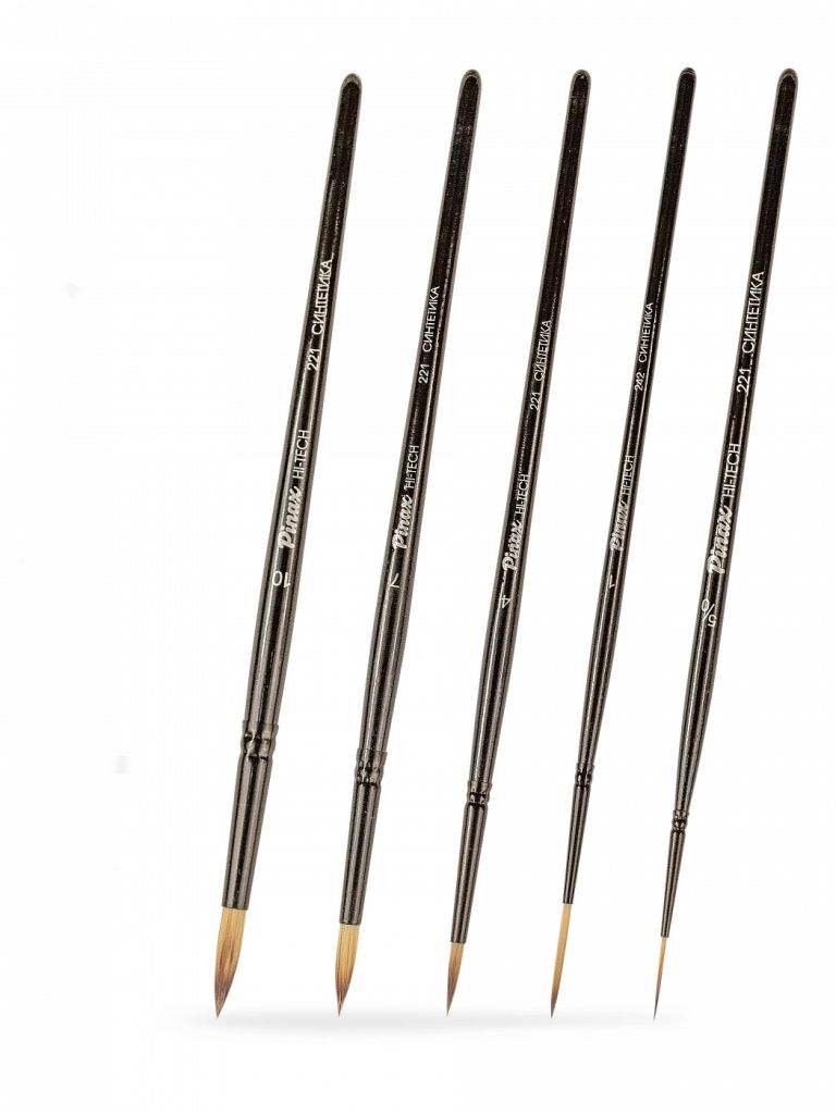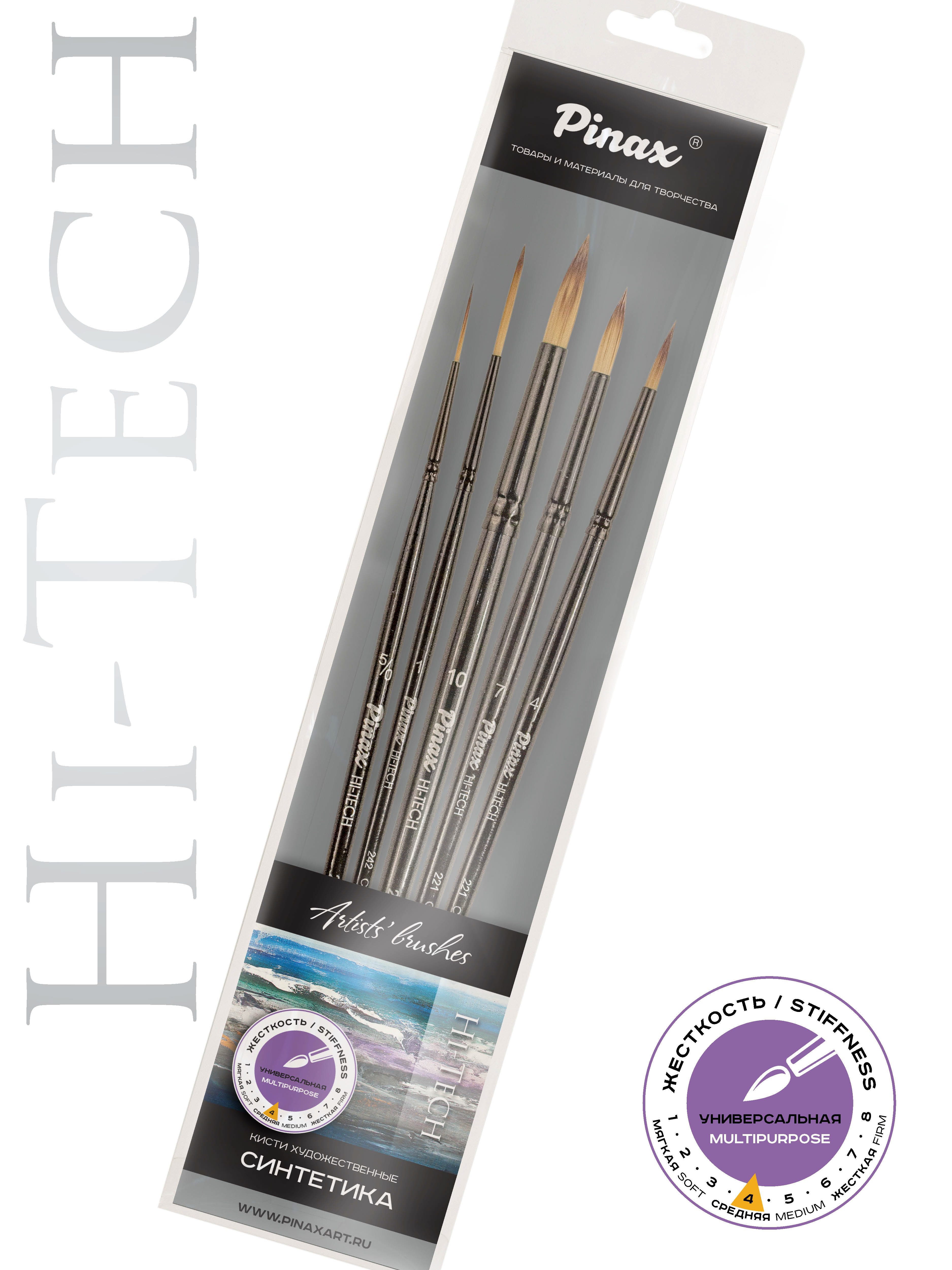 О наборе: в наборе 5 кистей серии Pinax Artists HI-TECH 221 с пучком круглой формы и разных размеров. Характеристика: для изготовления кистей серии Pinax Artists HI-TECH 221 используется южнокорейская синтетика. Волос изготовленный из такой синтетики по своим характеристикам имитирует колонковый ворс. Кисти износостойки и устойчивы к воздействию химических растворителей. Пучок кисти круглой формы с заостренным кончиком. Кисти выполнены на короткой глянцевой деревянной ручке. Втулка хромированная медная. Применение: синтетика, которая использована при производстве кистей этой серии, делает кисти универсальными в применении. Кисти подходят для использования любителями и профессионалами во всех техниках живописи. При работе с кистями данной серии, удобно регулировать толщину мазка меняя силу нажима на кисть. Производство: данный товар представлен брендом Pinax. Pinax — мировой бренд товаров, который представлен на российском рынке с начала XXI века. Изначально компания производила только кисти для художественных работ, но затем расширила свое производство и не потеряв качество своей продукции начала производить холсты, мольберты и аксессуары для художников. Сейчас ассортимент включает в себя большое количество наименований.
