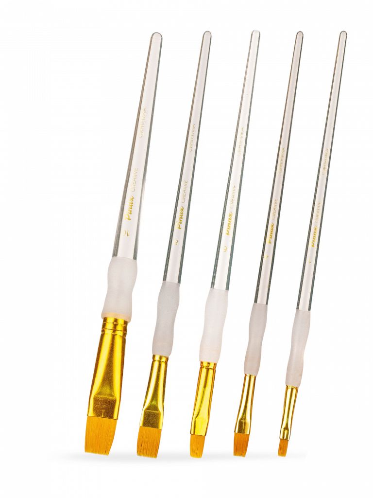 О наборе: в наборе 5 кистей с пучком плоской формы разных размеров на короткой акриловой ручке с эргономичной вставкой в зоне обхвата. Характеристика: кисти из универсальной золотистой синтетики — эластичный и управляемый синтетический ворс отлично набирает краску и равномерно отдает на поверхность, а тонкий кончик у круглых кистей позволяет работать с мельчайшими деталями. Отличительная особенность данной серии в специальной ручке с мягкой вставкой для удобного хвата - пальцы не устанут даже после самых продолжительных работ. Применение: кисти серии подходят для широкого круга потребителей, они одинаково удобны для учащихся и для профессиональных художников. Кисти универсальны в применении, походят для выполнения работ различными видами красок — акрил, акварель, гуашь. Производство: данный товар представлен брендом Pinax. Pinax — мировой бренд товаров, который представлен на российском рынке с начала XXI века. Изначально компания производила только кисти для художественных работ, но затем расширила свое производство и не потеряв качество своей продукции начала производить холсты, мольберты и аксессуары для художников. Сейчас ассортимент включает в себя большое количество наименований.