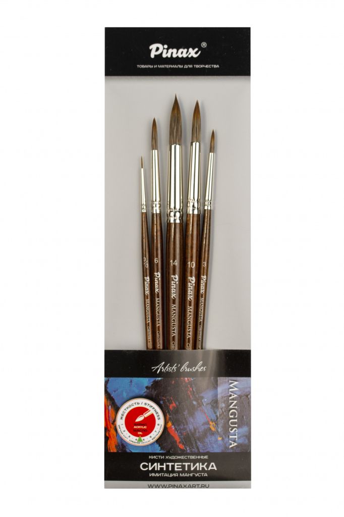 О наборе: в наборе 10 кистей из синтетики, имитирующей ворс мангуста. Характеристика: каждая кисть в линейке Pinax Mangusta состоит из высококачественных 100% синтетических волокон средней жесткости. Уникальное синтетическое волокно кистей Pinax Mangusta повторяет структуру натурального волоса мангуста — каждая ворсинка имеет заостренный кончик и текстуру поверхности натурального волоса мангуста — жестче колонка, но мягче свиной щетины, идеальна для масляной живописи. Мягкие и эластичные, но невероятно прочные, эти кисти на длинной ручке идеально подходят для работы в технике лессировки, обеспечивают надежный контроль мазка и равномерно отдают краску на живописную основу. Пестрый рисунок синтетических волокон перекликается с натуральным волосом мангуста – от смеси темно-коричневого и бежевого до золотистого на кончике кисти. Применение: кисти Pinax Mangusta предназначены для работ масляными и акриловыми красками. Производство: данный товар представлен брендом Pinax. Pinax — мировой бренд товаров, который представлен на российском рынке с начала XXI века. Изначально компания производила только кисти для художественных работ, но затем расширила свое производство и не потеряв качество своей продукции начала производить холсты, мольберты и аксессуары для художников. Сейчас ассортимент включает в себя большое количество наименований.