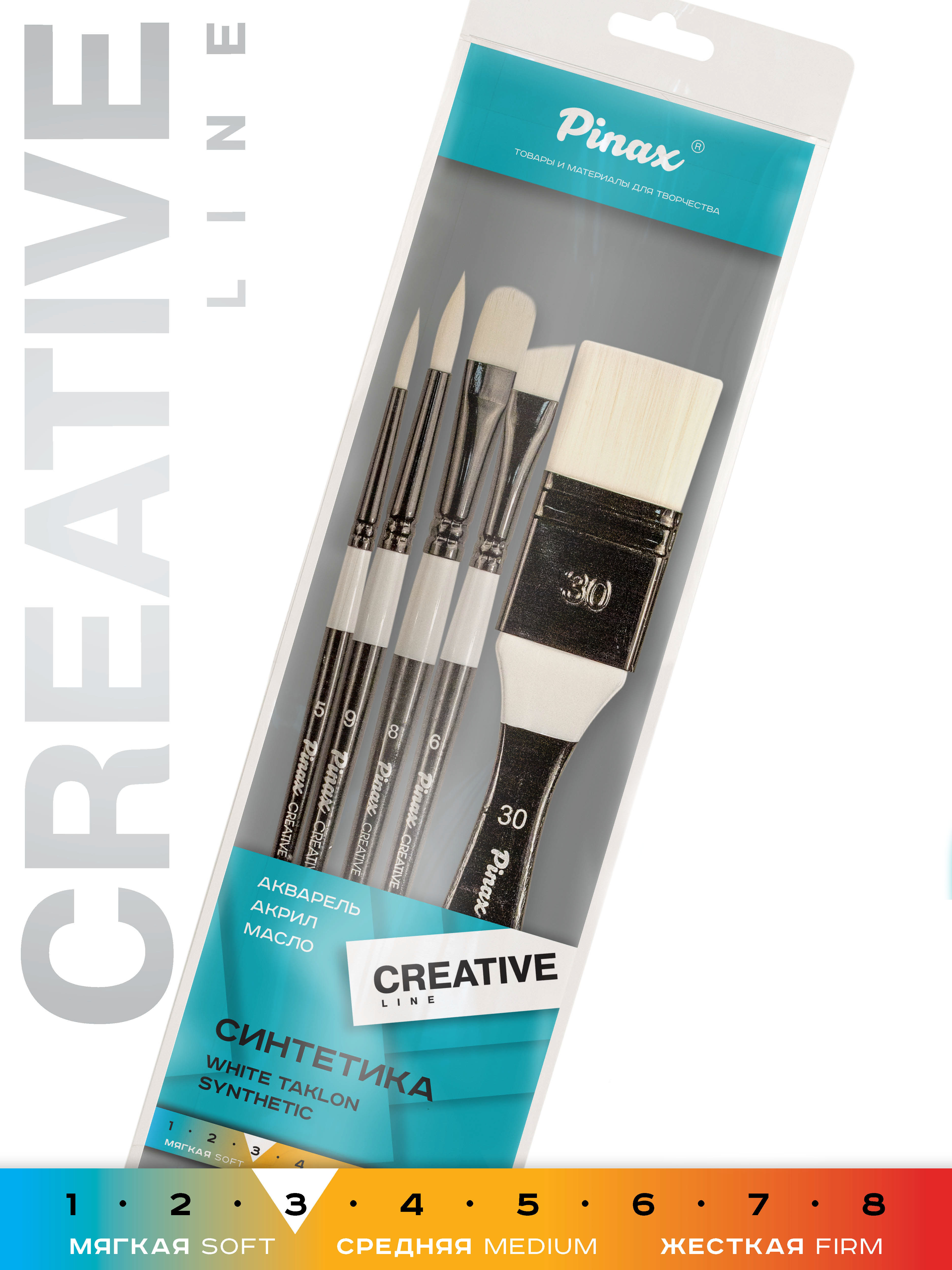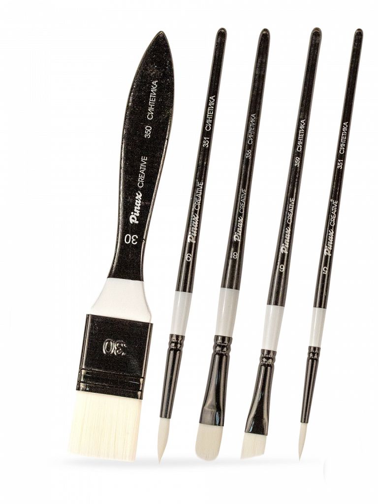 О наборе: в наборе 5 кистей CREATIVE White Taklon с пучком из мягкой белой синтетики разной формы разных размеров. Характеристика: кисти из белой акварельной синтетики в оптимальном сочетании цена/качество. Эластичный и управляемый синтетический ворс отлично набирает краску и равномерно отдает на поверхность, а тонкий кончик у круглых кистей позволяет работать с мельчайшими деталями. Кисти представлены на короткой лакированной деревянной ручке, изготовленной из березы, алюминиевая бесшовная втулка окрашена в черный цвет. Применение: кисти этой серии обладают мягким синтетическим ворсом, благодаря чему идеально подходят для работ красками на водной основе и мягким акрилом. Производство: данный товар представлен брендом Pinax. Pinax — мировой бренд товаров, который представлен на российском рынке с начала XXI века. Изначально компания производила только кисти для художественных работ, но затем расширила свое производство и не потеряв качество своей продукции начала производить холсты, мольберты и аксессуары для художников. Сейчас ассортимент включает в себя большое количество наименований.
