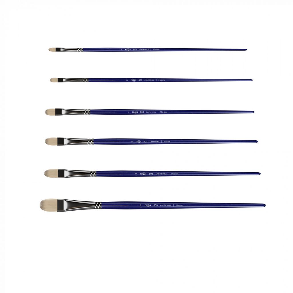 Кисть из высококачественного синтетического волоса, имитирующего щетину — полноценная замена кисти из натурального материала. Форма пучка круглой кисти в виде конуса с идеальным зауженным кончиком позволяет писать крупными, плотными или структурными мазками, а также вести тонкую и изящную линию. Белый цвет волоса позволяет более точно отслеживать чистоту оттенка краски, повышая качество работы с точки зрения колористики, а новый подход к технологии создания синтетики увеличил эластичность и упругость материала. Длинная ручка покрыта глянцевым лаком цвета ультрамарин, окольцована никелированной обоймой, дает возможность лучше контролировать работу. Подходит для масляных, акриловых, гуашевых красок, медиумов, лаков и паст.