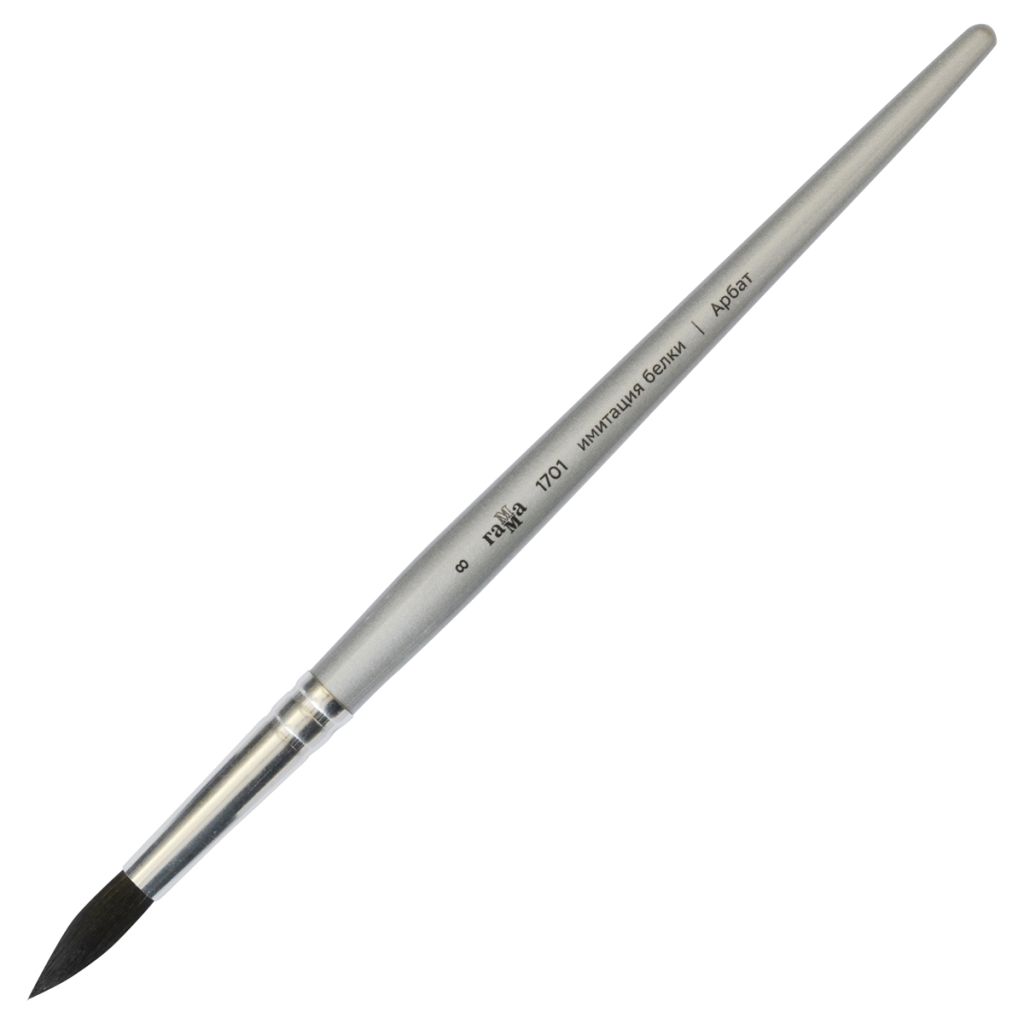 Художественные кисти ГАММА серии «Арбат» изготовлены из мягкой синтетики имитирующей волос белки. Кисти предназначены для работы акварельными, гуашевыми и акриловыми красками. Тончайший синтетический волос, используемый при производстве кистей, позволяет хорошо набирать и отдавать краску, при этом отлично держит форму и острый кончик, кисть очень упругая и позволяет контролировать мазок. Кистью легко писать детали, выполнять заливки и моделировать объём. Бережно взаимодействует с бумагой, подходит для работы в технике лессировки. Номер кисти соответствует диаметру пучка кисти.