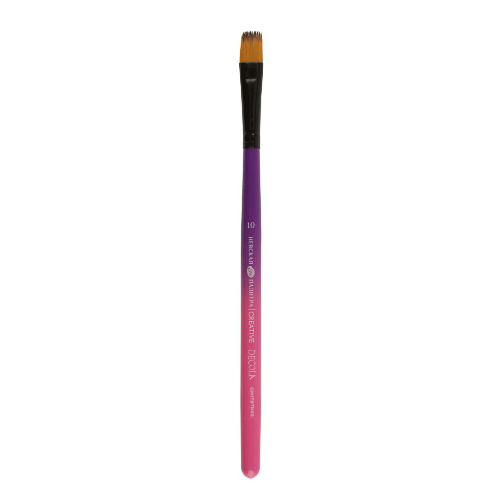 Синтетическая кисть на короткой ручке из прочного и лёгкого металла, что придаёт кисти долговечность и устойчивость. Металлическая ручка также обеспечивает удобство в использовании и позволяет художнику легко контролировать движения кисти. Это особенно важно при выполнении тонких и детальных работ. Ворс кистей сделан из синтетики и имеет ряд преимуществ перед натуральным, включая устойчивость к химическим воздействиям, долговечность и возможность использования с широким спектром красок. Кисти с плоской формой пучка представлены в разных размерах, в ярком дизайне. Кисти подходят для работы с различными типами красок, включая акрил, масло, акварель и гуашь. Благодаря своей универсальности, она подойдёт как начинающими, так и опытным художникам.