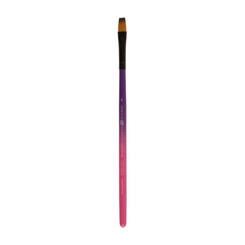 Синтетическая кисть на короткой ручке из прочного и лёгкого металла, что придаёт кисти долговечность и устойчивость. Металлическая ручка также обеспечивает удобство в использовании и позволяет художнику легко контролировать движения кисти. Это особенно важно при выполнении тонких и детальных работ. Ворс кистей сделан из синтетики и имеет ряд преимуществ перед натуральным, включая устойчивость к химическим воздействиям, долговечность и возможность использования с широким спектром красок. Кисти с плоской формой пучка представлены в разных размерах, в ярком дизайне. Кисти подходят для работы с различными типами красок, включая акрил, масло, акварель и гуашь. Благодаря своей универсальности, она подойдёт как начинающими, так и опытным художникам.