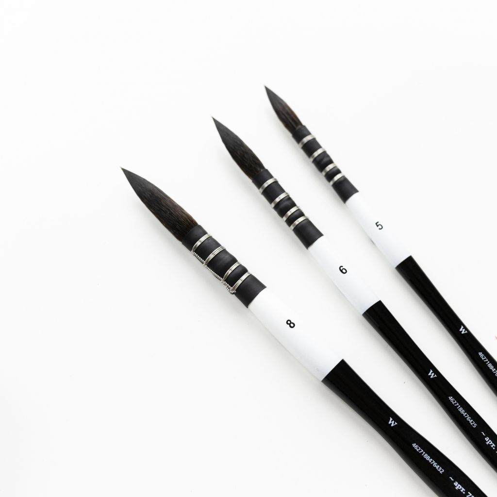 Кисти Blanka изготовлены из мягкой синтетики черного цвета, имитирующей белку. Такой ворс отлично подходит для акварели. Благодаря удлиненному ворсу кисть впитывает больше влаги и дольше удерживает ее. Практичные кисти данной серии сочетают в себе преимущества натурального ворса и износостойкости синтетики, а значит меньше изнашиваются. Лаконичный дизайн и черно-белая цветовая гамма выглядят благородно и делают эти кисти не только надежным художественным инструментом, но и красивым аксессуаром. В серии представлены кисти с французским типом крепления, который обеспечивает более длинную выставку ворса и максимально продолжительную линию. Благодаря нескользящему покрытию кисти удобно держать в руках.