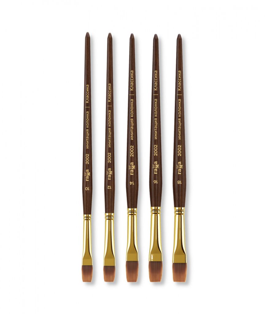 Художественные кисти «ГАММА» изготовлены из высококачественной синтетики, имитирующей ворс колонка. Изделия предназначены для работы с акварельными, гуашевыми и акриловыми красками. Кисть имеет свойствами натурального колонка, но при этом обладают повышенной износоустойчивостью. Кисть вяжут из волосков разной длины, что позволяет при соприкосновении наполненной кисти с поверхностью создать капиллярный поток краски.