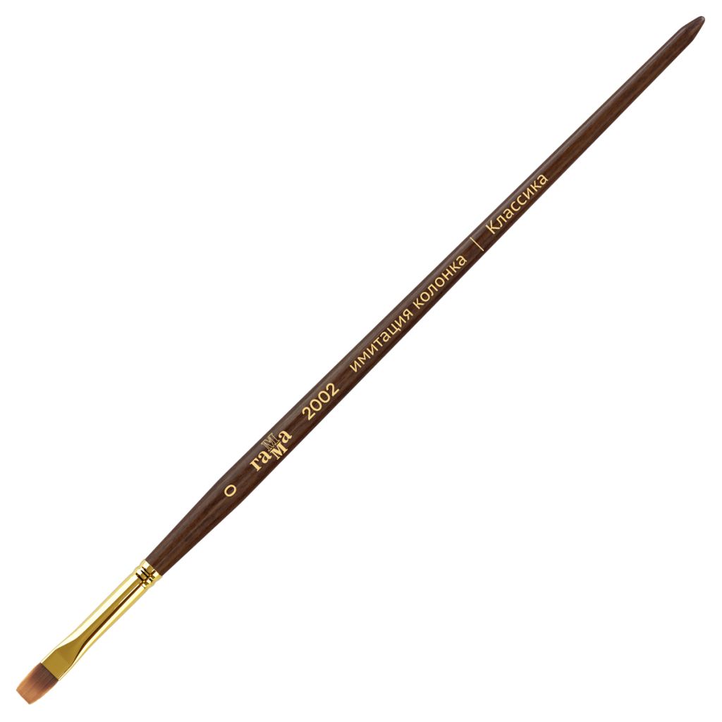 Художественные кисти «ГАММА» изготовлены из высококачественной синтетики, имитирующей ворс колонка. Изделия предназначены для работы с акварельными, гуашевыми и акриловыми красками. Кисть имеет свойствами натурального колонка, но при этом обладают повышенной износоустойчивостью. Кисть вяжут из волосков разной длины, что позволяет при соприкосновении наполненной кисти с поверхностью создать капиллярный поток краски.