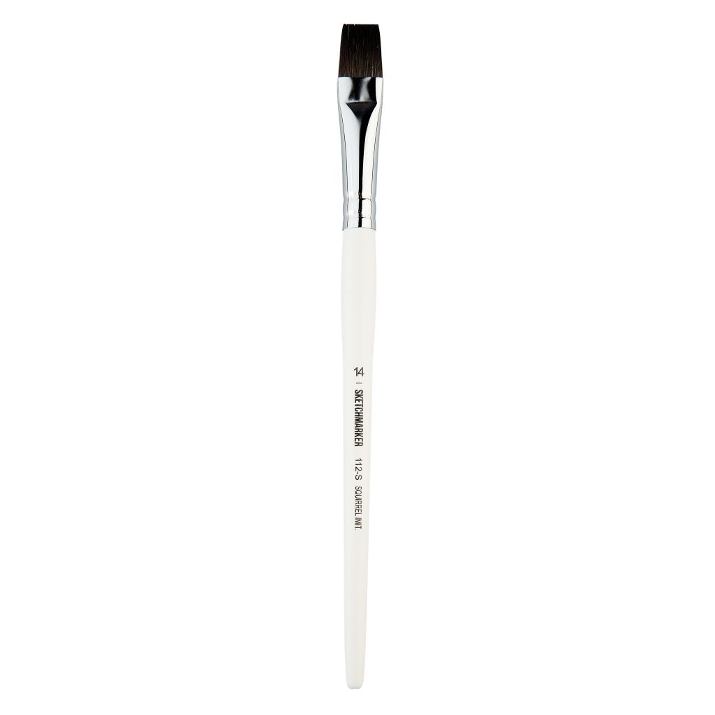 Кисти серии 112 от бренда Sketchmarker изготовлены из синтетики, имитирующей беличий ворс. Кисти обладают оптимальными свойствами мягкости и упругости, предназначены для работы акварелью и другими красками на водной основе. В отличие от кистей из натурального ворса, синтетические кисти обладают повышенной износоустойчивостью. Серия представлена кистями с пучком плоской формы, широкий размерный ряд позволяет выбрать кисть как прорисовки деталей, так и для крупных мазков и заливок. Рабочая часть кисти закреплена металлической обоймой на короткой деревянной ручке.