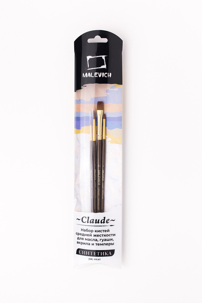 Кисти серии "Claude" ("Клод") от компании "Малевичъ" изготовлены из синтетики золотистого цвета (Shining golden synthetic), имитирующей колонковый волос. Золотистая синтетика это - ворс средней жесткости, который отлично подходит для густых красок: для масла, акрила, гуаши, темперы. Кисти выполнены в благородной цветовой гамме: матовая золотая втулка, коричневый прозрачный лак и лаконичная маркировка делают эти кисти не только надежным художественным инструментом, но и красивым аксессуаром. Кисть держит свою форму даже при частом использовании, ворс прочно закреплен, а втулка не расшатывается со временем.