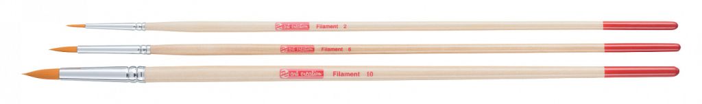 Характеристика: кисти изготовлены из жесткой синтетики (полиэстера). Ворс таких кистей оранжевого цвета, средней жесткости. Отличительной особенностью таких кистей является высокой износостойкость. Применение: кисти из синтетики универсальны в применении. Хорошо проявляют свои свойства при работе с маслом, акрилом и гуашью. Производство: производится в городе Апелдорн голландской компанией ROYAL TALENS, которую основал Мартин Таленс (MartenTalens) в 1899 году. «ROYAL TALENS» производит все виды художественных красок и является одним из ведущих производителей в своей отрасли.