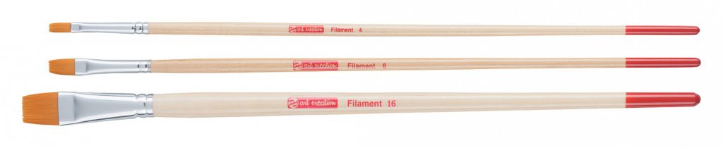 Характеристика: кисти изготовлены из жесткой синтетики (полиэстера). Ворс таких кистей оранжевого цвета, средней жесткости. Отличительной особенностью таких кистей является высокой износостойкость. Применение: кисти из синтетики универсальны в применении. Хорошо проявляют свои свойства при работе с маслом, акрилом и гуашью. Производство: производится в городе Апелдорн голландской компанией ROYAL TALENS, которую основал Мартин Таленс (MartenTalens) в 1899 году. «ROYAL TALENS» производит все виды художественных красок и является одним из ведущих производителей в своей отрасли.