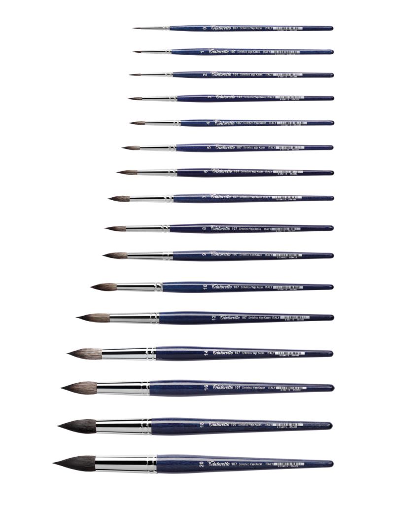 Имитация волоса казанской белки не только в чисто эстетическом плане, но особенно в том, что касается несомненного качества волокон. Наряду с оригинальными ярко выраженными чертами беличьего волоса, такими как мягкость и гигроскопичность, ворс этой кисти также обладает прекрасной эластичностью кончика, что делает эти кисти превосходным инструментом не только для акварели и гуаши но и для таких особых техник, как роспись по стеклу и керамики.