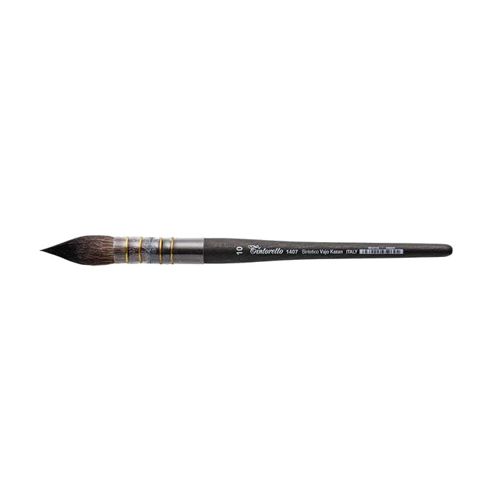 Кисти Tintoretto Vajo Kazan созданы при участии художника Феличе Фельтракко специально для современных акварелистов и обладают такими важными качествами как тонкость кончика, высокая плотность и упругость. Ручка кисти имеет особую лакировку, которая проникает в древесину, проявляет её яркость, защищает от типичных поломок и растрескивания поверхности, а также противоскользящую поверхность для большего удобства художника.
