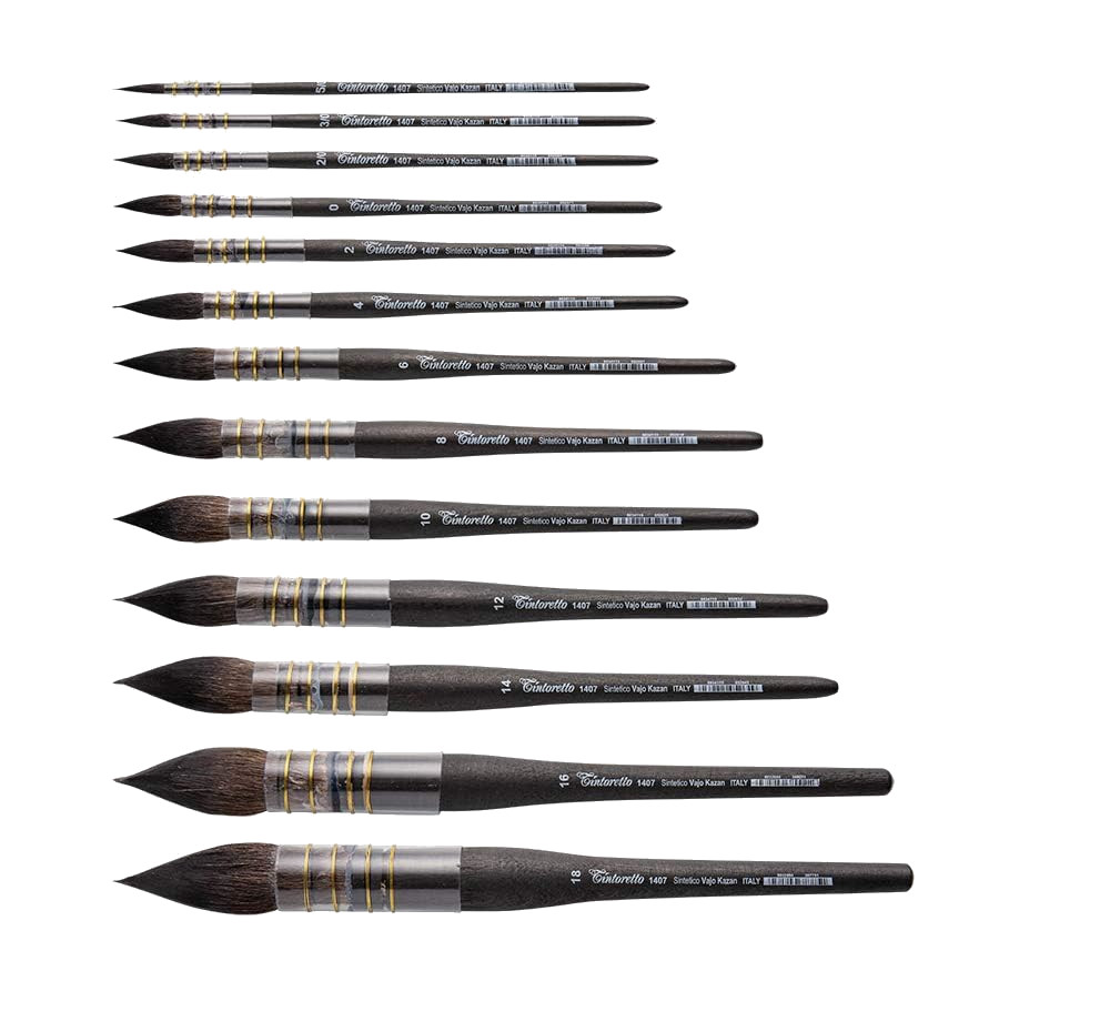 Кисти Tintoretto Vajo Kazan созданы при участии художника Феличе Фельтракко специально для современных акварелистов и обладают такими важными качествами как тонкость кончика, высокая плотность и упругость. Ручка кисти имеет особую лакировку, которая проникает в древесину, проявляет её яркость, защищает от типичных поломок и растрескивания поверхности, а также противоскользящую поверхность для большего удобства художника.