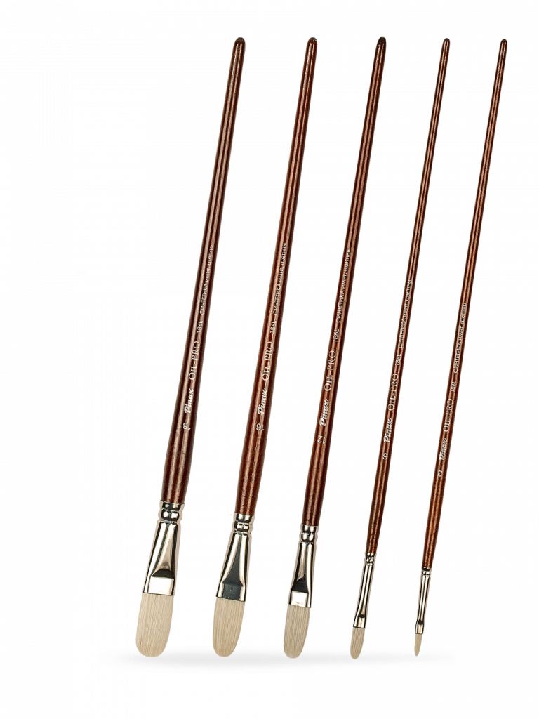 О наборе: в наборе 5 кистей с овальной формой пучка с удлиненной выставкой. Характеристика: кисти серии Pinax Oil-PRO сделаны из высококачественной синтетической имитации щетины производства Японии и выдержат любые испытания самыми густыми красками и растворителями, обеспечивая равномерное нанесение масляных или акриловых красок даже без разбавления - прямо из тюбика. Белая синтетика Pinax Oil-PRO имитирует структуру натуральной свиной щетины - комбинация сверхпрочных и гладких синтетических волокон нескольких различных диаметров удерживает максимальный объем краски на кисти, так, как это делают расщепленные кончики на волосках натуральной щетины из региона Chungking, однако синтетика отличается большей износостойкостью и лучше удерживает краску, равномерно отдавая ее на холст. В отличие от кистей из натуральной щетины, такая кисть лучше держит форму независимо от степени приложенного давления, что дает больше контроля мазка и позволяет точнее наносить цвет. Применение: кисти Pinax Oil-PRO идеально подходят для работы густыми красками — масло и акрил. Производство: данный товар представлен брендом Pinax. Pinax — мировой бренд товаров, который представлен на российском рынке с начала XXI века. Изначально компания производила только кисти для художественных работ, но затем расширила свое производство и не потеряв качество своей продукции начала производить холсты, мольберты и аксессуары для художников. Сейчас ассортимент включает в себя большое количество наименований.