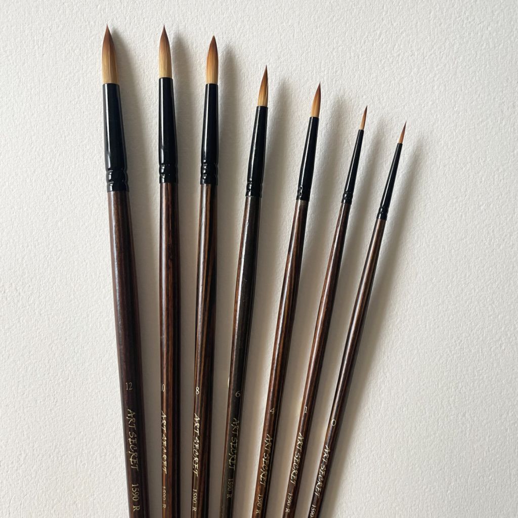 Кисти серии 1590 R от бренда Art Secret выполнены из качественной упругой синтетики. Кисти обладают высокой износоустойчивостью, отлично держат форму и идеально подходят для детальной работы. Такие кисти отлично подойдут как для работы акварелью, так и живописью акрилом или масляными красками. Пучок кисти закреплён металлической обоймой на длинной деревянной ручке.