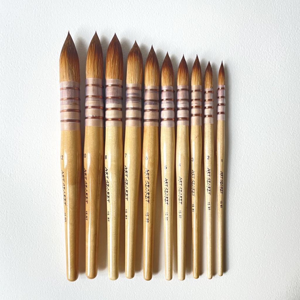 Кисти серии 15R произведены из синтетического волокна и собраны вручную. Специальное синтетического волокно обладает мягкостью и упругостью, свойственной акварельным кистям, при этом в отличие от натуральных кистей имеет увеличенный срок службы. Французский тип крепления обеспечивает высокую впитываемость и отдачу краски, набирая краску по всей длине ворса. Кисти отлично держат форму, а благодаря заострённому кончику и широкому размерному ряду позволяют не только создавать большие заливки и цветовые пятна, но и работать с деталями.