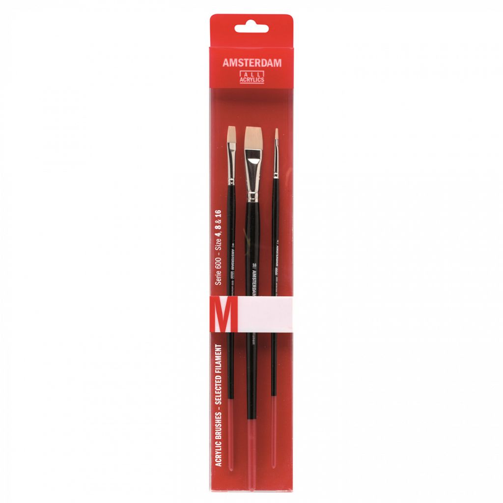 Комплектация: набор состоит из кистей, изготовленных из синтетического ворса. В наборе 3 плоские кисти: №4, 8, 16. Блистерная упаковка. Характеристика: кисти изготовлены из жесткой синтетики (полиэстера). Ворс таких кистей оранжевого цвета, средней жесткости. Отличительной особенностью таких кистей является высокой износостойкость. Применение: кисти, входящие в данный набор, универсальны в применении. Хорошо проявляют свои свойства при работе с маслом, акрилом и гуашью. Производство: производится в городе Апелдорн голландской компанией «ROYAL TALENS», которую основал Мартин Таленс (MartenTalens) в 1899 году. «ROYAL TALENS» производит все виды художественных красок и является одним из ведущих производителей в своей отрасли.