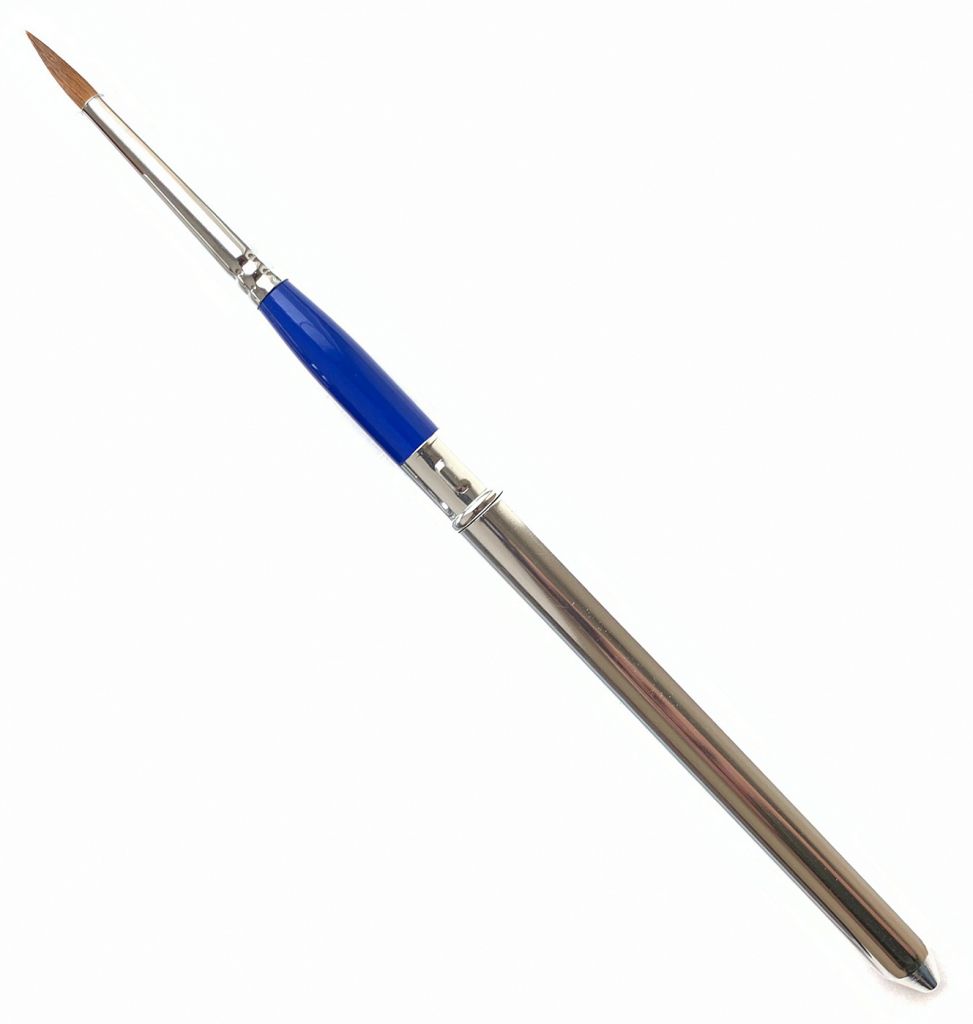 О серии: профессиональные кисти для акварельной живописи. Кисти изготавливаются из синтетического ворса, который по своим свойствам имитирует ворс колонка. Особенностью данной серии является наличие футляра, который накручивается в качестве ручки кисти. По завершению работы, рабочая часть кисти отделяется и помещается внутрь полой металлической ручки. Такая особенность делает кисти данной серии идеальными для работы на пленэрах и вне студии. Характеристика: для производства кистей этой серии использован специализированный синтетический волос, который по своим качествам напоминает волос колонка. Кисти из такого материала мягкие и эластичные. Кисти изготовлены с пучком круглой формы. Такие кисти идеально подходят для акварельной живописи и для работ другими водорастворимыми красками. Применение: серия разработана для выполнения работ в техниках акварельной живописи. Подходит для профессионального использования.