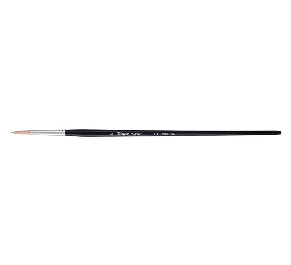 О серии: веерные кисти серии «Pinax Creative 341» изготавливаются из синтетического волокна. В данной серии представлен широкий размерный ряд кистей. Характеристика: кисти этой серии изготавливаются из высококачественной синтетики золотисто-оранжевого цвета (Golden Taklon). Волос таких кистей имеет среднюю жесткость и хорошо держит свою форму. Дополнительным преимуществом кистей из синтетического волоса считается то что он гипераллергенный. Кисти серии «Pinax Creative 341» имеют круглый пучок с заостренным кончиком. Кисти изготовлены на короткой деревянной ручке, покрытой полупрозрачным лаком зеленого цвета. Крепление ворса к черенку кисти выполнено за счет алюминиевой втулки. Применение: кисти этой серии универсальны в своем применении. Они подходят для художников всех уровней и могут использоваться для работы разными художественными красками и лаками. Производство: данный товар представлен брендом Pinax. Pinax — мировой бренд товаров, который представлен на российском рынке с начала XXI века. Изначально компания производила только кисти для художественных работ, но затем расширила свое производство и не потеряв качество своей продукции начала производить холсты, мольберты и аксессуары для художников. Сейчас ассортимент включает в себя большое количество наименований.