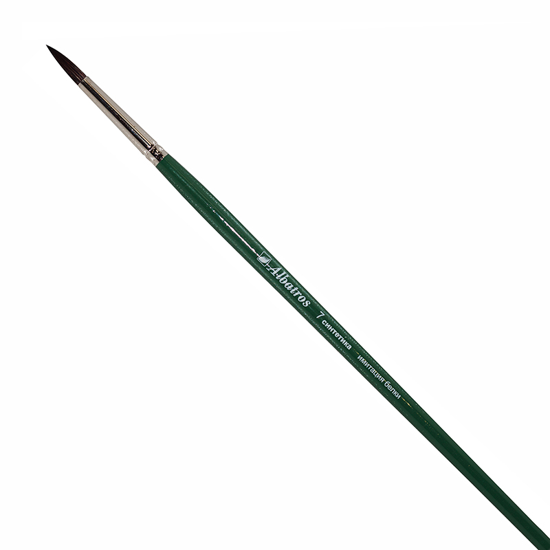 О серии: синтетические кисти «Имитация белки» похожи на кисти, произведенные из натурального ворса белки. Все кисти выпускаются поштучно. Характеристика: для производства кистей этой серии использовано специализированное синтетическое волокно, ворс из которого максимально похож на ворс белки. Кисти из такого материала мягкие и эластичные. Кисти изготовлены с круглым пучком, который заострен к кончику. Пучок кисти надежно зафиксирован цельнотянутой металлической обоймой. Кисти выполнены на длинной деревянной ручке. Применение: кисти этой серии используются в основном для выполнения работ в техниках акварельной живописи. На усмотрение художника возможно использование с другими художественными материалами. Производство: изготавливается компанией «Альбатрос», которая начала свою деятельность в 1989 году в городе Новосибирск. Компания хорошо зарекомендовала себя на рынке художественных товаром. Она постоянно работает над расширением своего ассортимента. Сегодня «Альбатрос» выпускает художественные кисти, холсты, ящики для красок и различные аксессуары для художников.