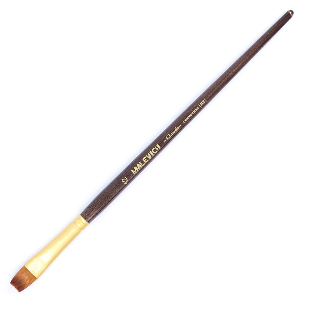 Кисти серии "Claude" ("Клод") от компании "Малевичъ" изготовлены из синтетики золотистого цвета (Shining golden synthetic), имитирующей колонковый волос. Золотистая синтетика это - ворс средней жесткости, который отлично подходит для густых красок: для масла, акрила, гуаши, темперы. Кисти выполнены в благородной цветовой гамме: матовая золотая втулка, коричневый прозрачный лак и лаконичная маркировка делают эти кисти не только надежным художественным инструментом, но и красивым аксессуаром. Кисть держит свою форму даже при частом использовании, ворс прочно закреплен, а втулка не расшатывается со временем. Ручка - оптимальной средней длины (18см). Выставка (длина ворса) - короткая. Номер кисти соответствует диаметру обоймы в миллиметрах.
